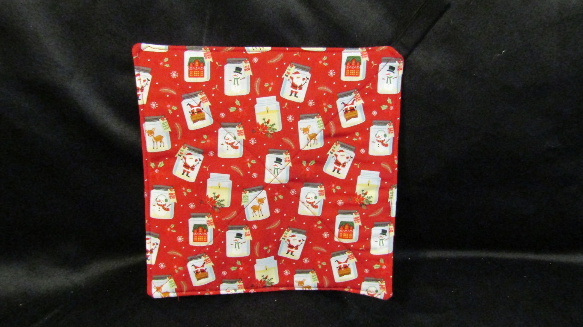 This pot holder is made with 100% cotton materials along with insul-bright material to help keep you from burning your hands when removing hot dishes from the oven. Size is 9x9.