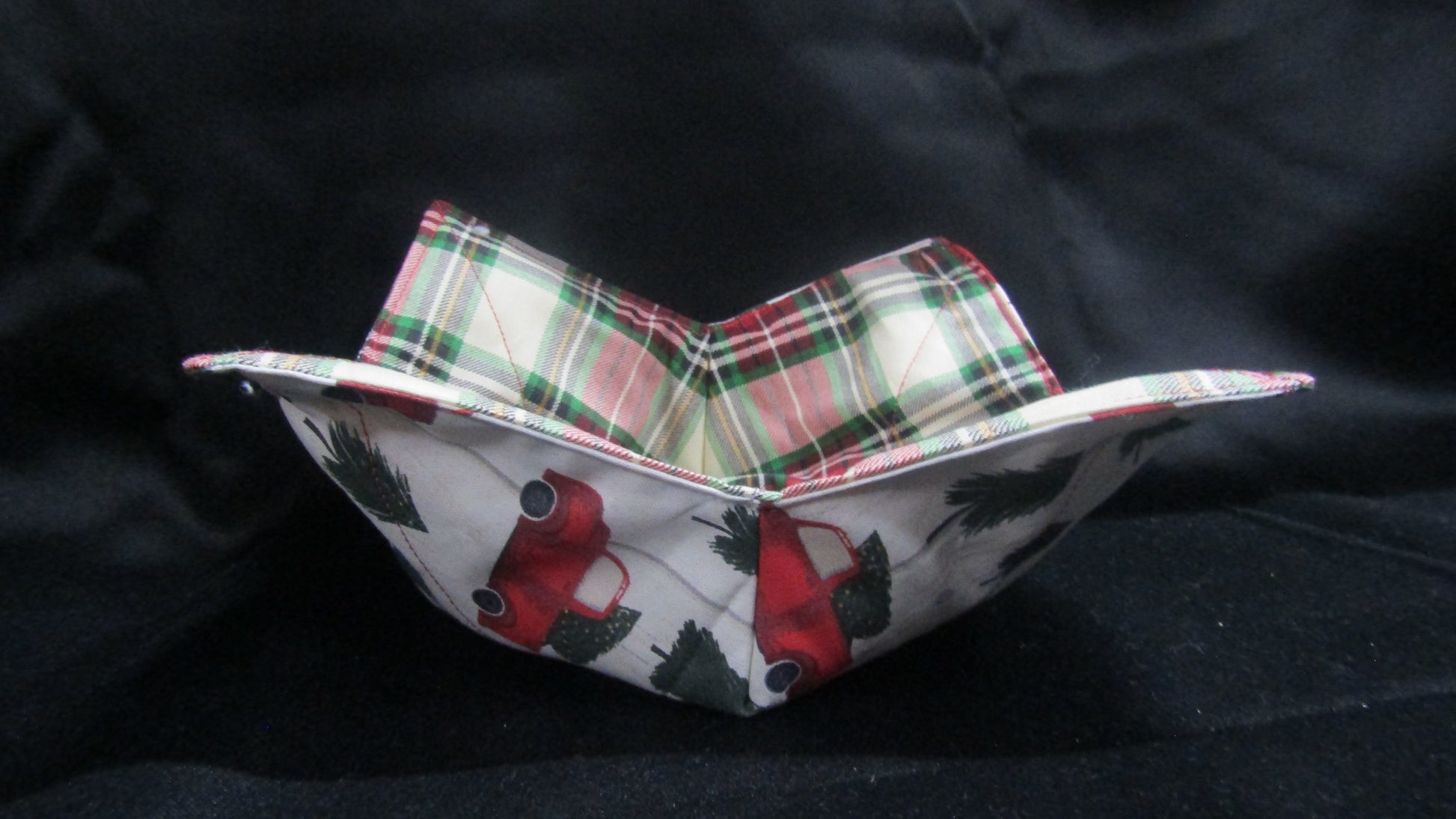 This bowl cozy is handmade with 100% cotton fabric, thread and batting. Simply place your bowl of food in this cozy and reheat for 2 minutes. Do not leave microwave unattended. Remove the bowl with the cozy to avoid burning your fingers. Bowl Cozy is also great for cold foods.