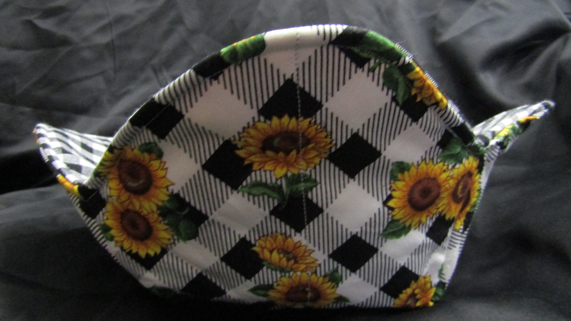 This cozy fits up to a 2.5 quart round casserole dish. This cozy makes it easier to transport your casserole dish from the oven to the table without burning your hands.